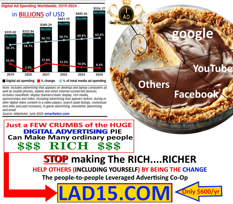 ![]() Please understand: Automatic INCOMEs DO NOT START BY Themselves. YOU WILL HAVE TO DO SOME INITIAL WORK! Otherwise: Why would the plan or program even need YOU????? They wouldn't. I'm not here to "blow smoke up your butt". See LIES blog post by clicking here! This is REAL, Legitimate, Proven, and Legal. This is our 18th year! It uses LEVERAGE, but is not a "ponzi" or a scam. It's simple. It's advertising! Digital Advertising brought in more than $325,000,000,000.00